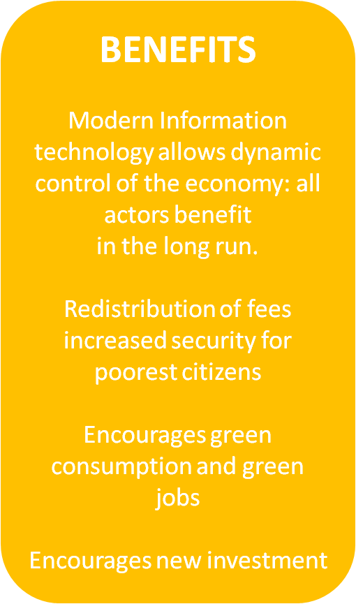 One single supplementary surcharge on import or extraction is what The Swedish Sustainable Economy Foundation (TSSEF) is proposing. How we go about levying the tax is important if we are to achieve a transition of the economy. We can’t just extract a fee – what we do with the fee is important too. TSSEF prefers a good proportion of the fee to go to taxpayers as a climate dividend. They will then have more money in their pockets and be able to buy less energy-intensive (and less extraction-causing) products and services.