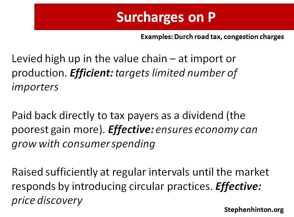I pointed out that surcharges once levied remove money from the economy and as such reduce economic growth. They also make food more expensive when applied to P which is essential in agriculture. And these surcharges affect the poor the most. The fairest thing to do is to redistribute the money collected back to taxpayers. They will get the same money in their pocket and be able to afford food – and when the market responds with circular P solutions – they will be able to buy the cheaper, circular economy food.