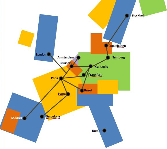 The route there was Stockholm – Copenhagen – Hamburg – Basel(Sleeper) Basel – Paris –Barcelona. (See the map.)