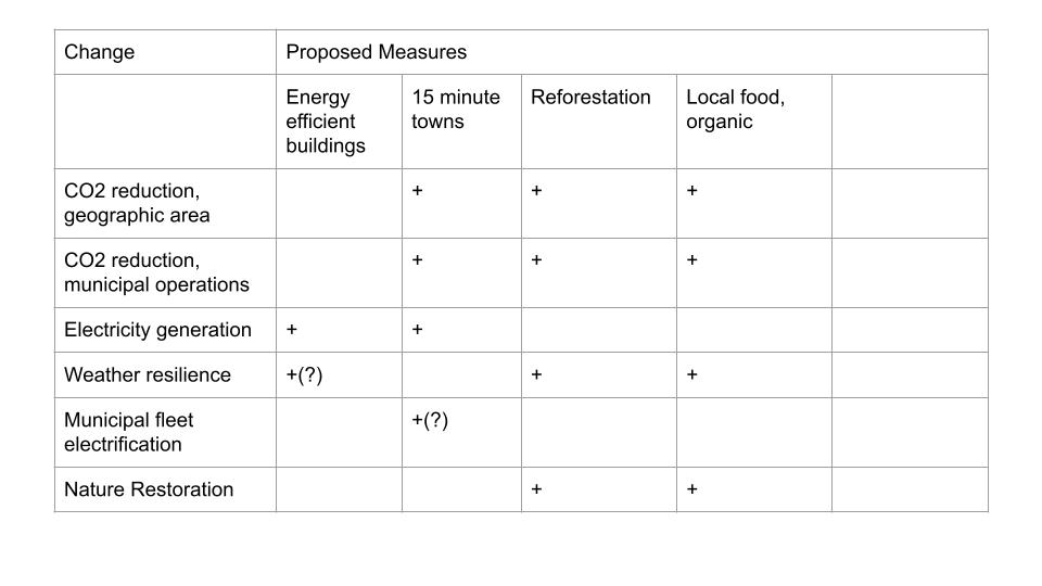 The table below illustrates this approach, where the possible measure is mapped against the change needed.