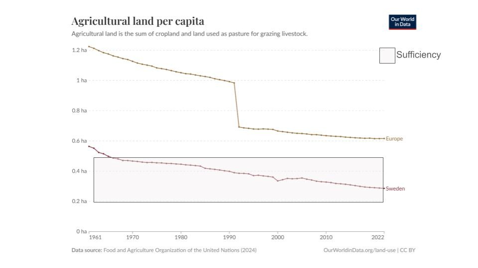 If land area per person is shrinking — as has been the case in parts of Europe — it indicates declining natural capital maturity, even if agricultural output appears stable.