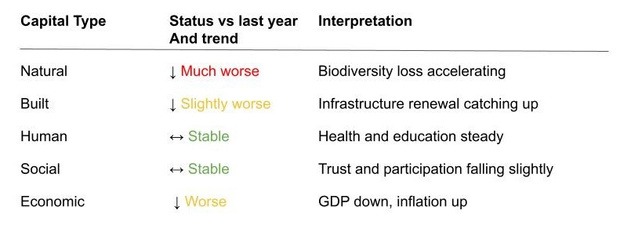If natural capital keeps trending downward while built capital improves, policymakers would have to explain why — and what trade-offs were made.