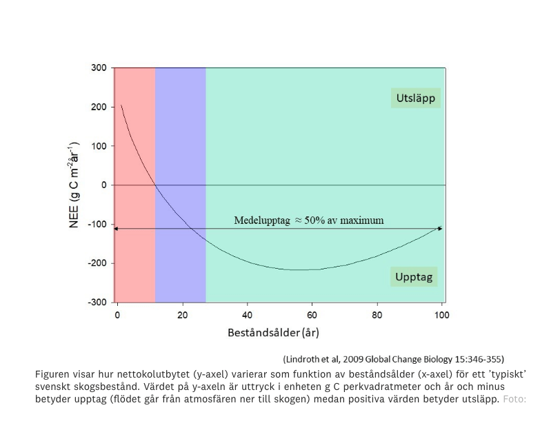 Note that the forest floor, the soil, contains more carbon than the trees, and felling the trees results in a release of carbon for some ten years until the forest has started to grow back.