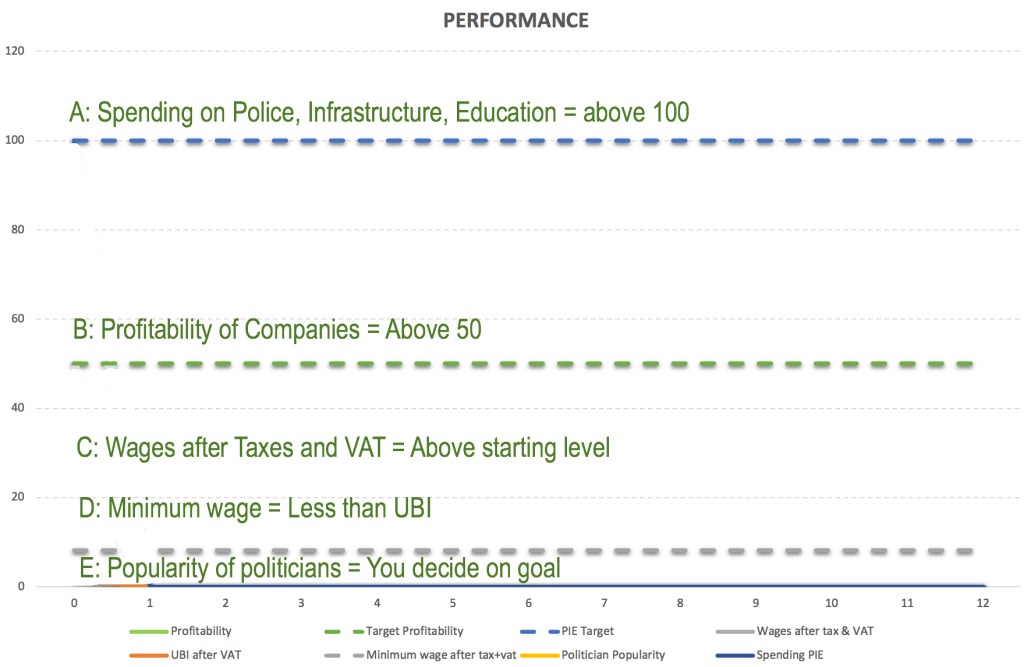 Discussion. What is interesting about UBI is that it raises many questions about people’s understanding of how the economy works and their own assumptions about people’s behaviour. One variant is for a group to stop after each decision round and discuss the thinking behind their decisions before they study the performance graphs to see the effects of their decisions.